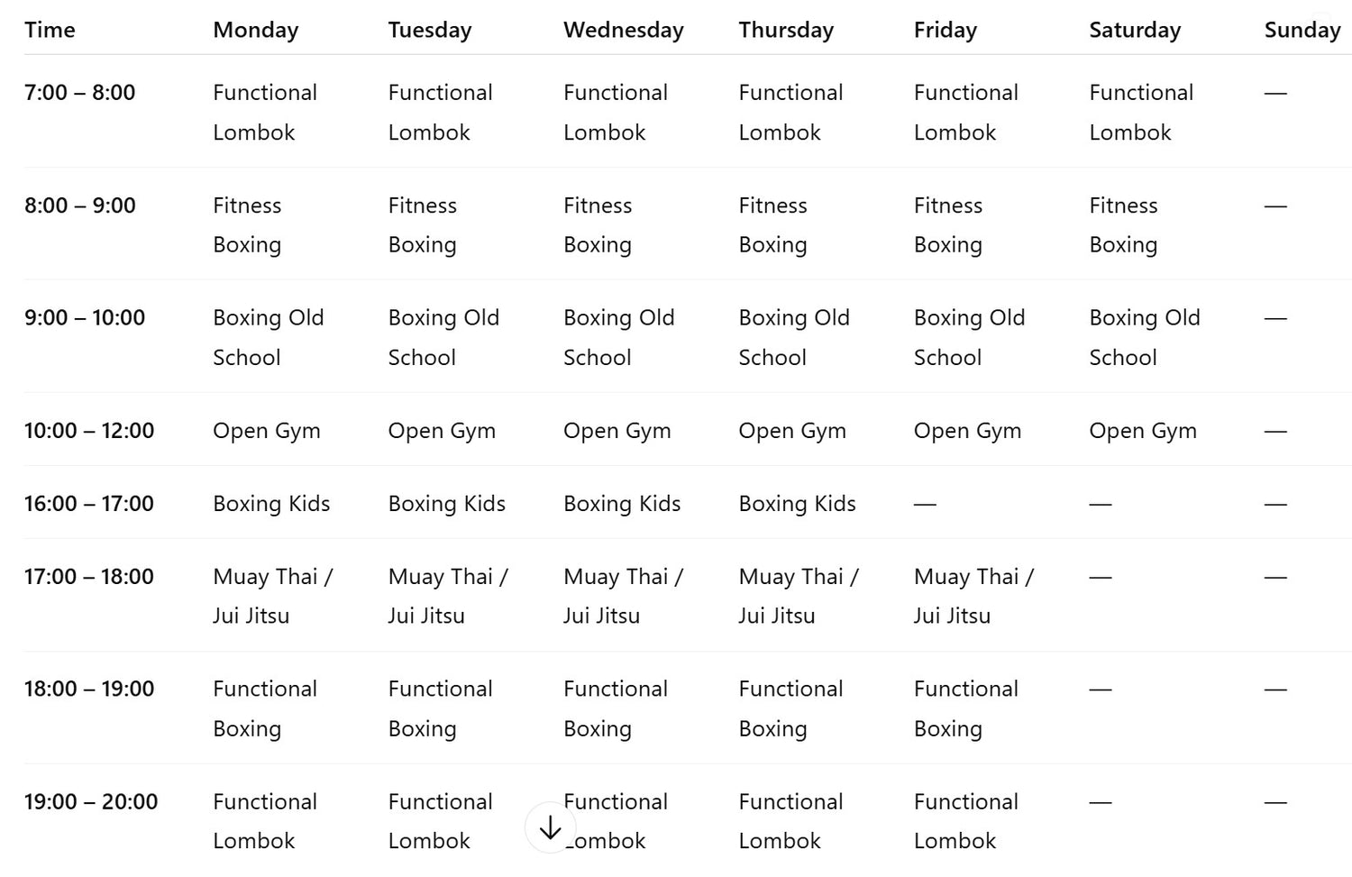Functional Boxing · Boxing Old School · Muay Thai · Jiu Jitsu · Boxing Kids · Hybrid Athlete · HIIT